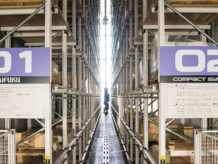 システム管理された立体倉庫で大切な在庫を保管