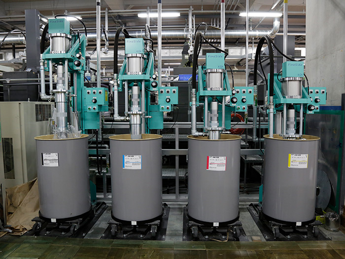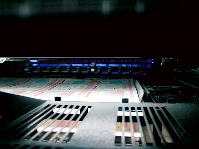 当社所有の菊全判およびA全判カラー印刷機には全て、高性能LED-UV乾燥システムを搭載。一般的な油性インキの使用時に散布するパウダーが不要になったことで、紙面上のザラツキやボタ落ちといった不良の発生も防ぎます。刷り本の擦れや排紙部分での裏写り防止にも効果を発揮し、インキの使用量が多い写真集やカタログなどの印刷に最適です。また、当社で使用するLED-UV用のインキはNon-VOC対応のインキで、環境に配慮されたものとなっています。
