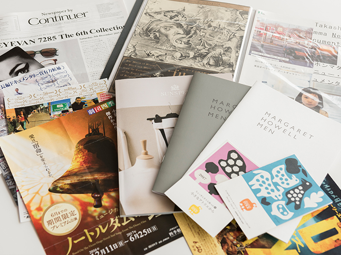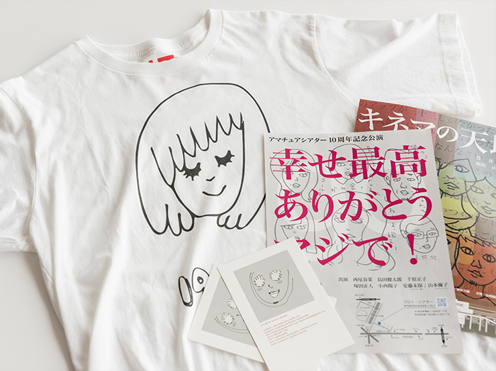 3年ほど前から社会人で構成する劇団に所属し、演劇活動を続けています。2年に1度のペースで公演があり、半年前からは毎週、それ以外は隔週で芝居の稽古に励んでいます。役を演じるということは素の自分を封印することでもあり、自分が無意識のうちに行っている仕草やくせなどを把握するように心がけています。また自分だけでなく、普段接する方々の歩き方や話し方、声の大きさなどにも注目するようになり、言動の一つひとつをていねいに、高い意識を持って行うようになりました。公演の告知チラシをはじめ、プライベート用の名刺カード、オリジナルのイラストをプリントしたTシャツまで、すべて自分自身の手で製作。舞台に立ち、役を演じることと併せて、何かを表現する楽しさに魅了されています。そのほか昔から、演劇や映画、美術展、ライブのチラシも収集。新たな表現チャネルの獲得につなげています。
