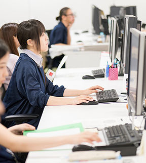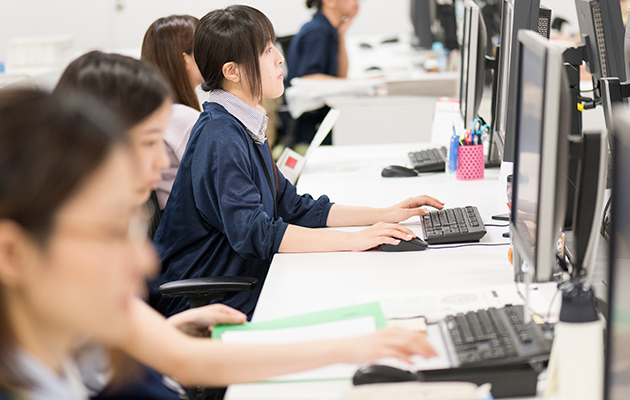 営業の取ってきた仕事の伝票を作成したり、納品の手配をするのがアシスタントの仕事。基本的に一つの課に一人のアシスタントがつきます。日中社内にいない営業に代わってお客様からの電話を受けたり、メールでやり取りを行うことも多いため、スピーディーで正確な対応が求められます。