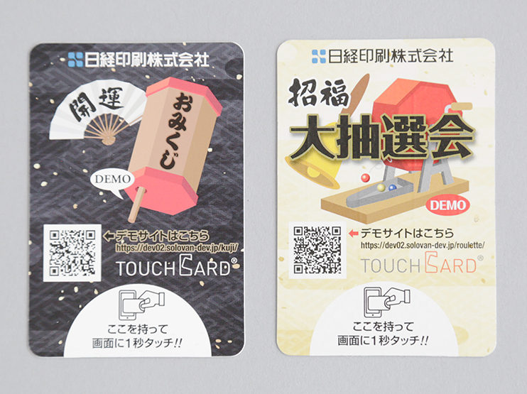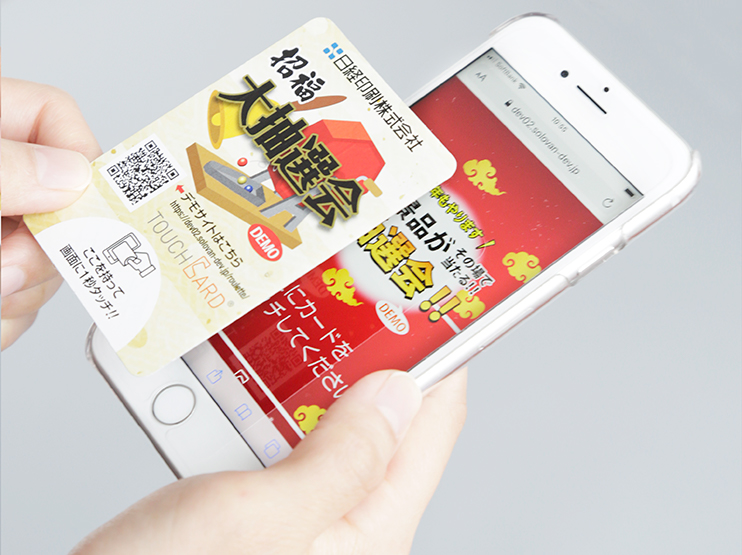 QRコードなどでWebサイトへ誘導。アクセスしたサイト画面にカードをタッチするとスペシャルコンテンツに誘導できます。カタチに残るカードとデジタルコンテンツの融合によりイベントの集客ツールとして利用できます。