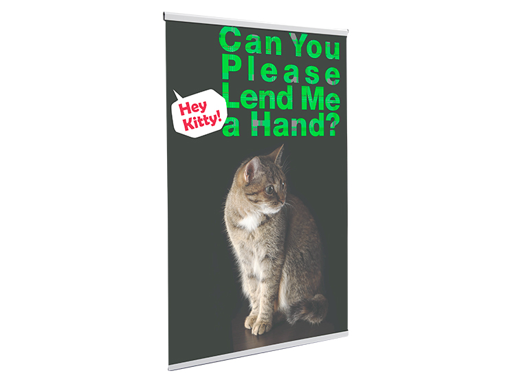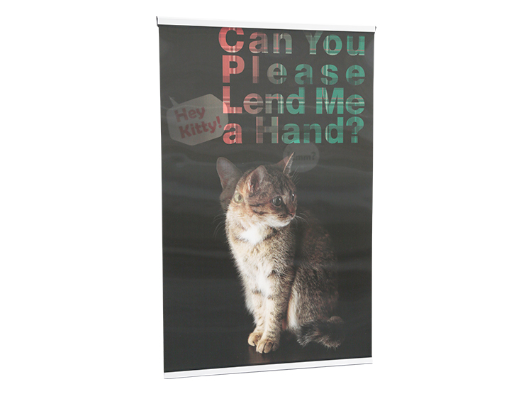 インパクトのある大判レンチキュラーポスターとバナースタンドがセットになったアイテムです。遠くから見たときに、横方向に移動することで絵柄が変化するため目を引くディスプレイです。