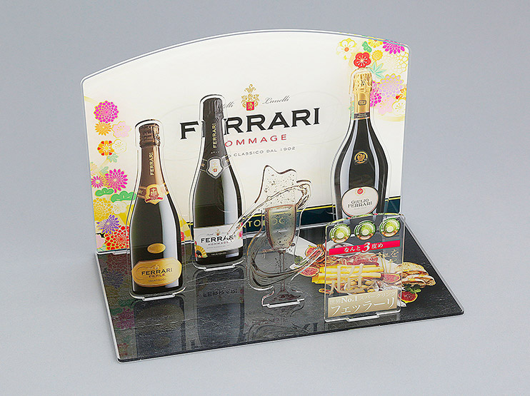 商品を陳列するフロア什器。1台から作製が可能です。陳列する商品やお客様のイメージに合わせて、最適な形状の設計をいたします。