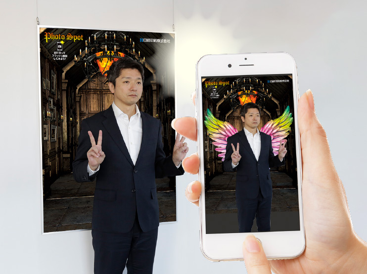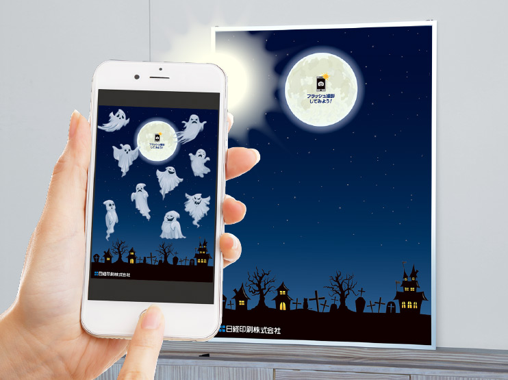 フラッシュ撮影をすると隠れた絵柄が出現します。アイデア次第で様々な展開が可能な商品となっています。
