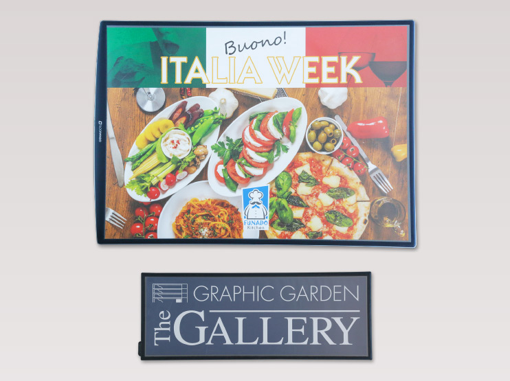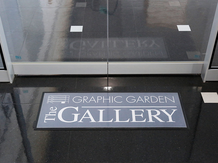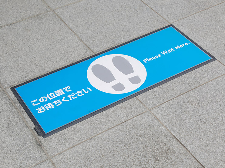 季節やキャンペーンに合わせて、中身を容易に入れ替えられるフロアマット。踏まれても傷のつきにくいので、長期間の設置が可能です。