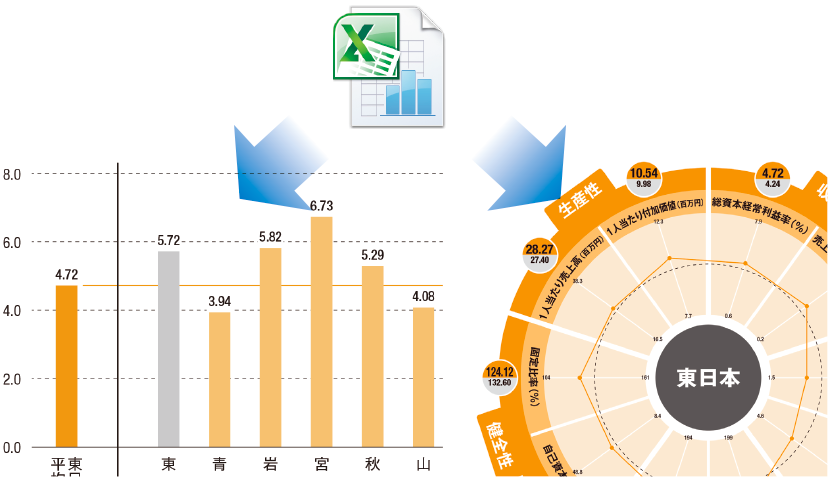 ・Excelデータの数値情報を元にチャートやグラフを描画