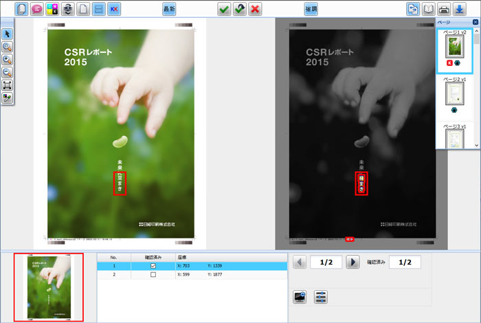 デジタル検版機能により、変更点の確認や、変更履歴の表示ができますので、修正された箇所が一目瞭然です。