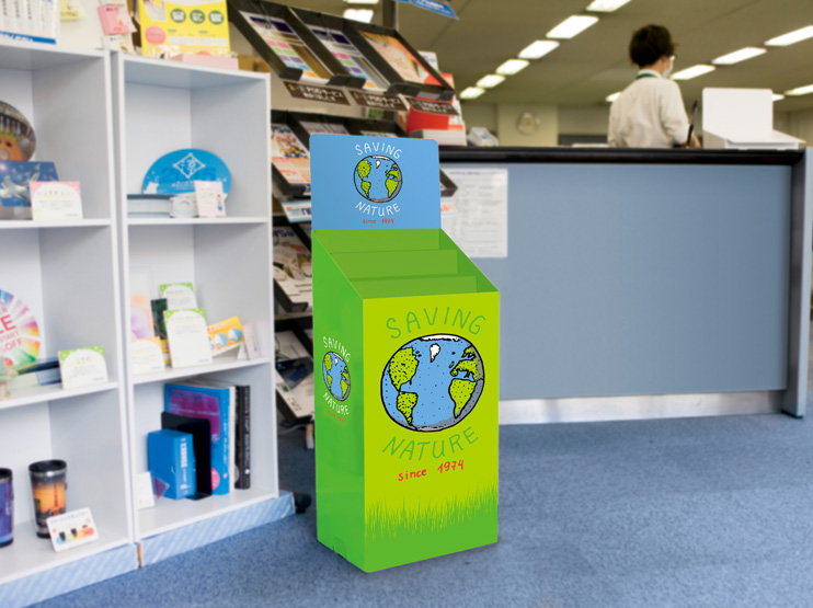 大判のレンチキュラーポスターをバナースタンドで掲示。