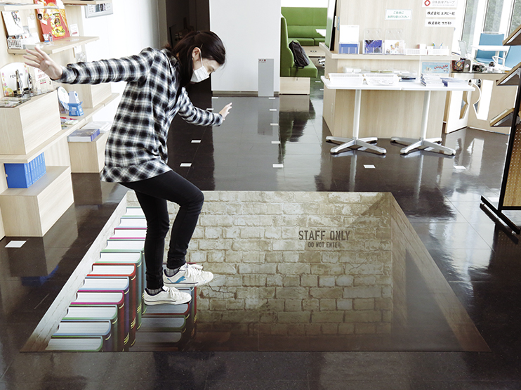 イベントスペースの一部にトリックアートを出現させ、フォトスポットとして利用する。なんてことも可能です。