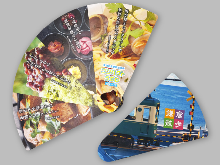 あおいだ際にほんのり清涼感のある香りがでる丸うちわや、扇タイプのうちわも作成できます。