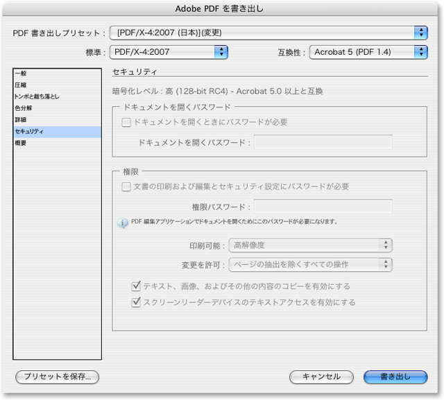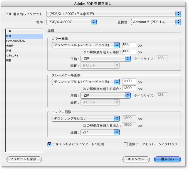 またこれらの設定項目は、左下の「プリセットを保存…」をクリックして適当な名称で保存しておけば、次回以降は逐一設定しなくても呼び出せるようになるので便利です。