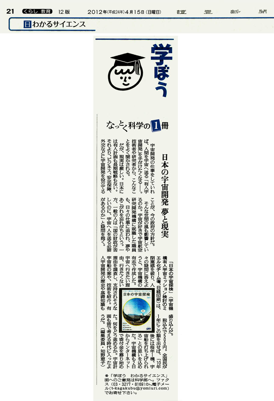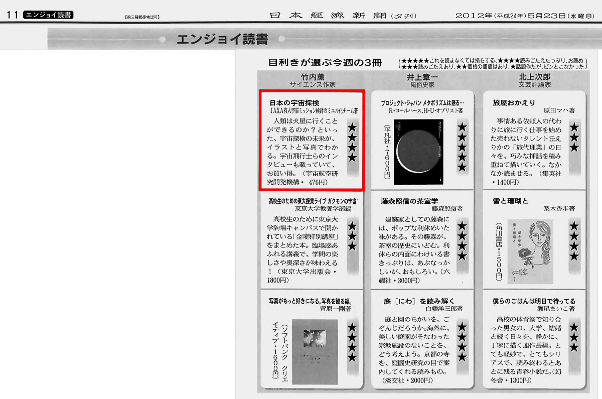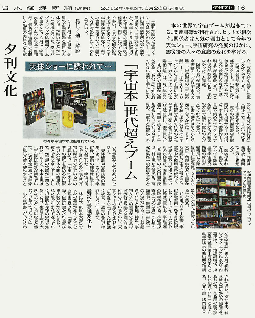 日本経済新聞「『宇宙本』世代超えブーム」(2012.06.26)